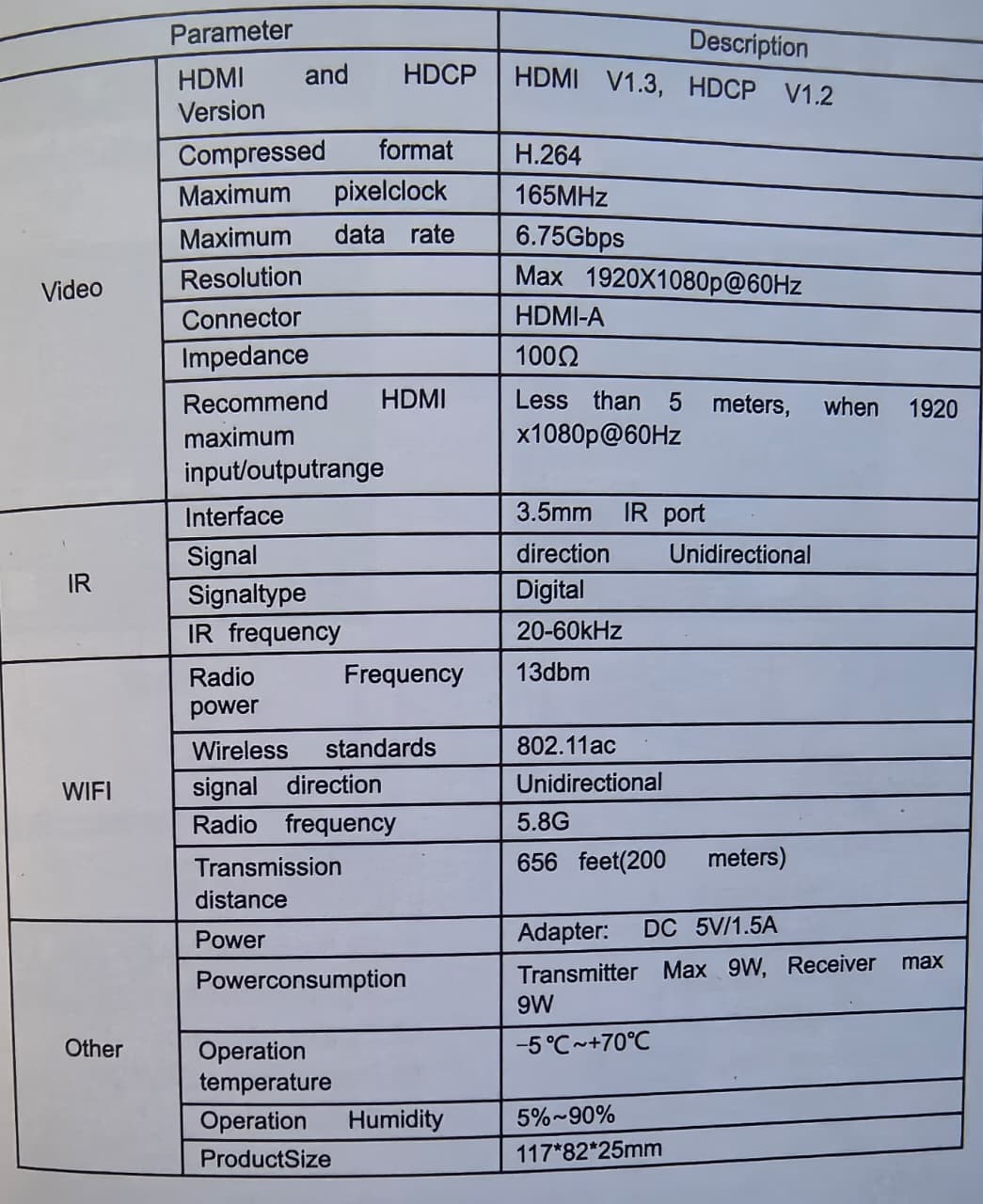 200MT WIFI EXTENSOR HDMI 1080P 2.4Ghz 5Ghz(Trans*2+Antenas*4+IR*2)