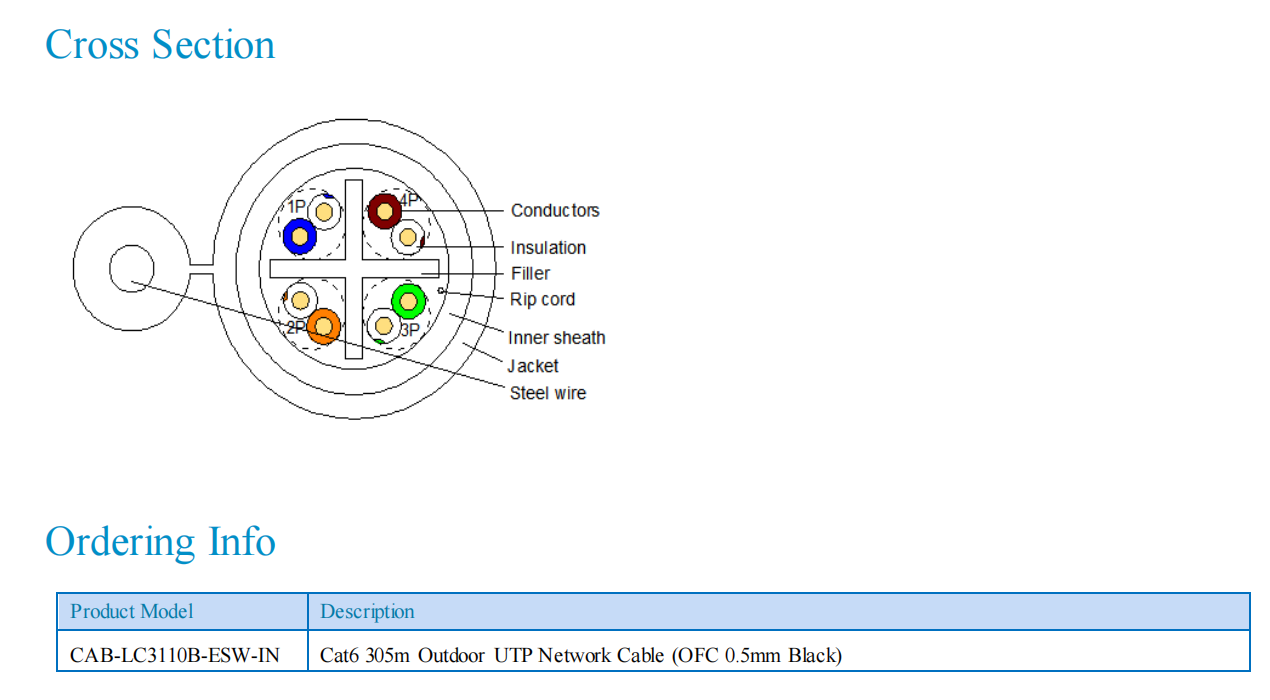 305MT CABLE UTP CAT6 EXTERIOR COBRE 99.99% 0.5MM 25AWG iSO/IEC OFC NEGRO CAB-LC3110B-ESW-IN UÑV
