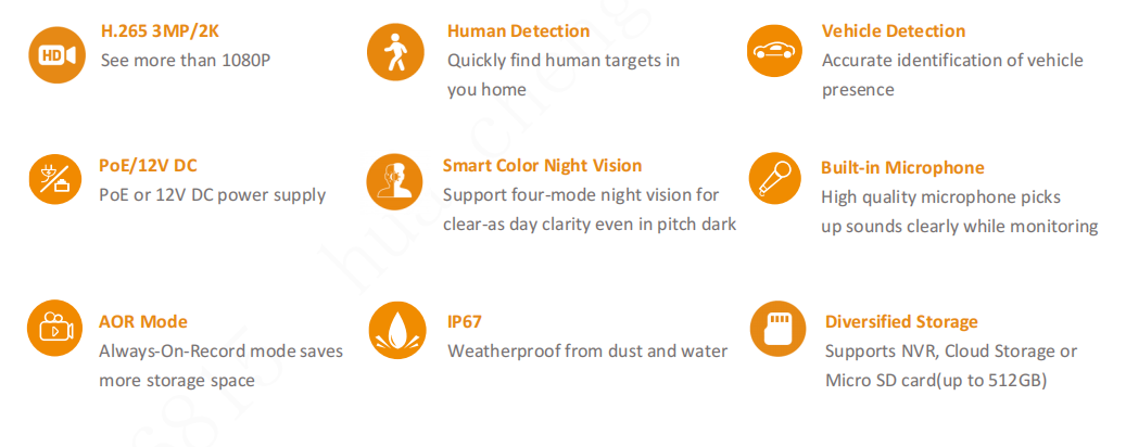 > Resolución máxima: 3 MP (2304x1296, velocidad de fotogramas de vídeo de hasta 25/30 fps)