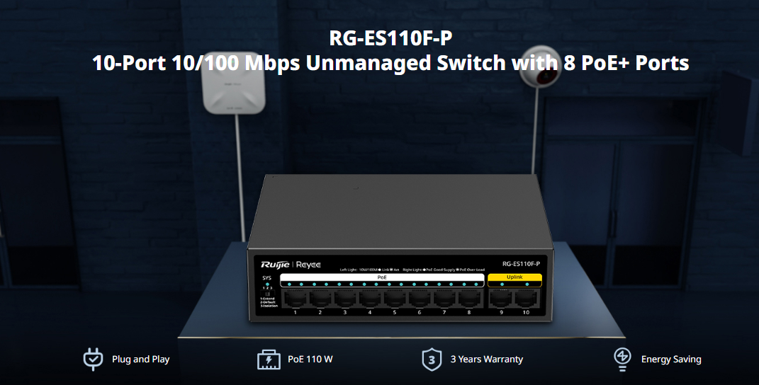 FICHA TÉCNICA : https://reyee.ruijie.com/en-global/products/reyee-switch/unmanaged-switch/rg-es110f-p/