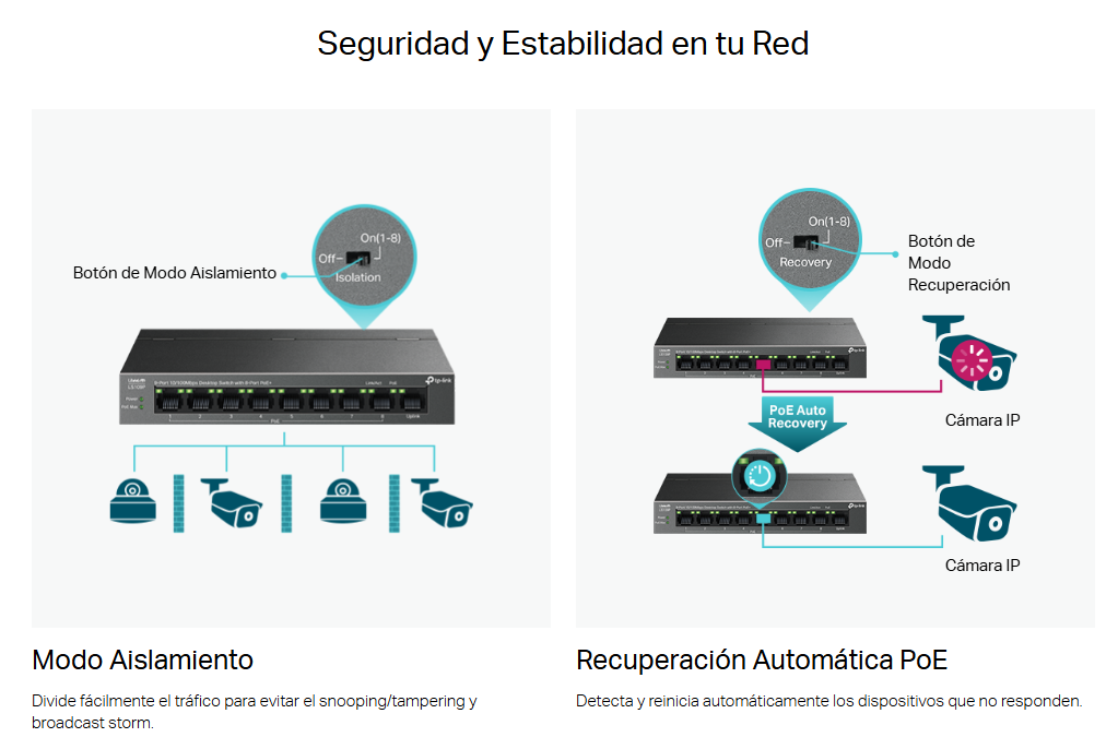 FICHA TÉCNICA: https://www.tp-link.com/es/business-networking/soho-switch-poe/ls109p/#specifications